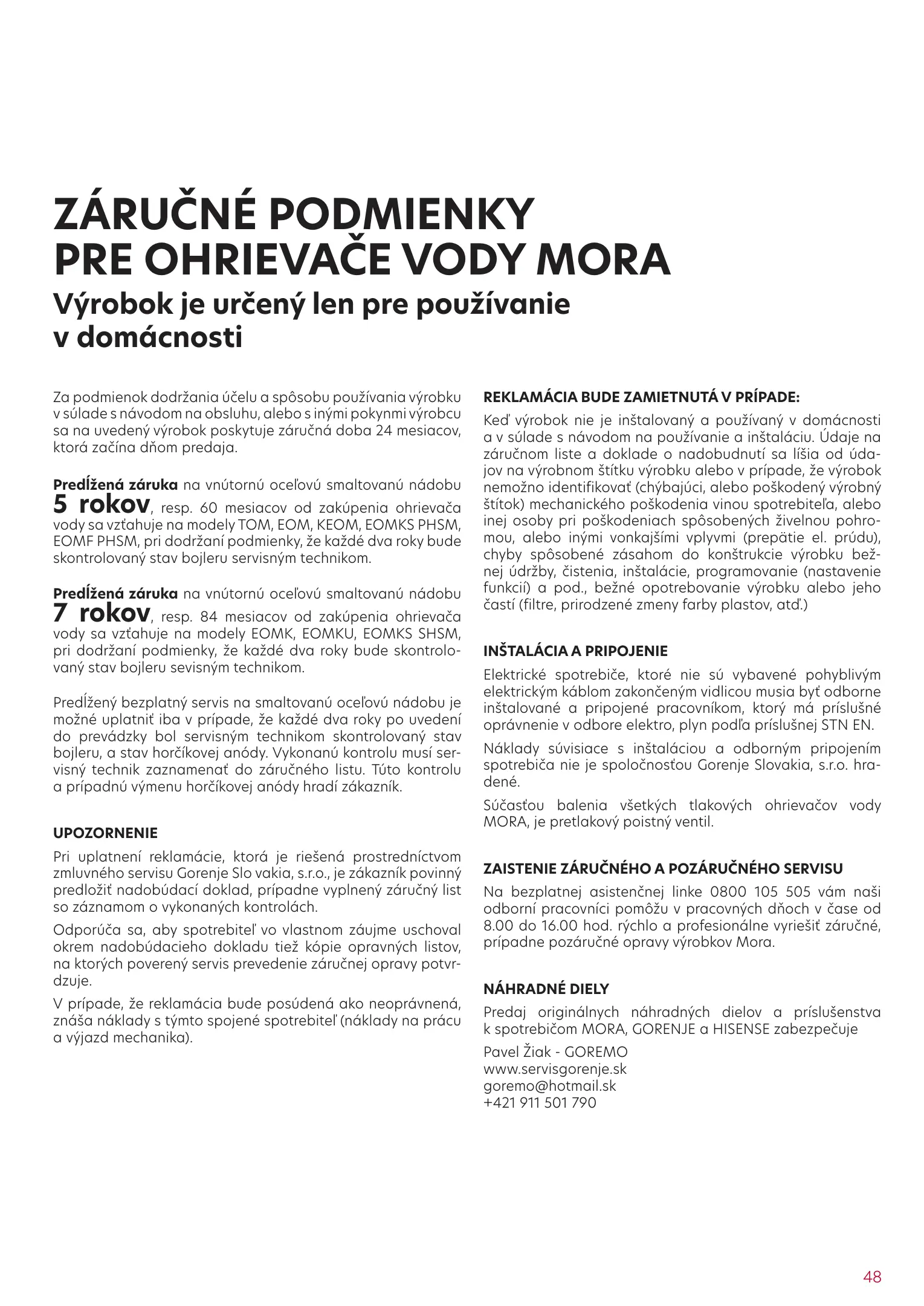 MORA elektrické ohrievače vody