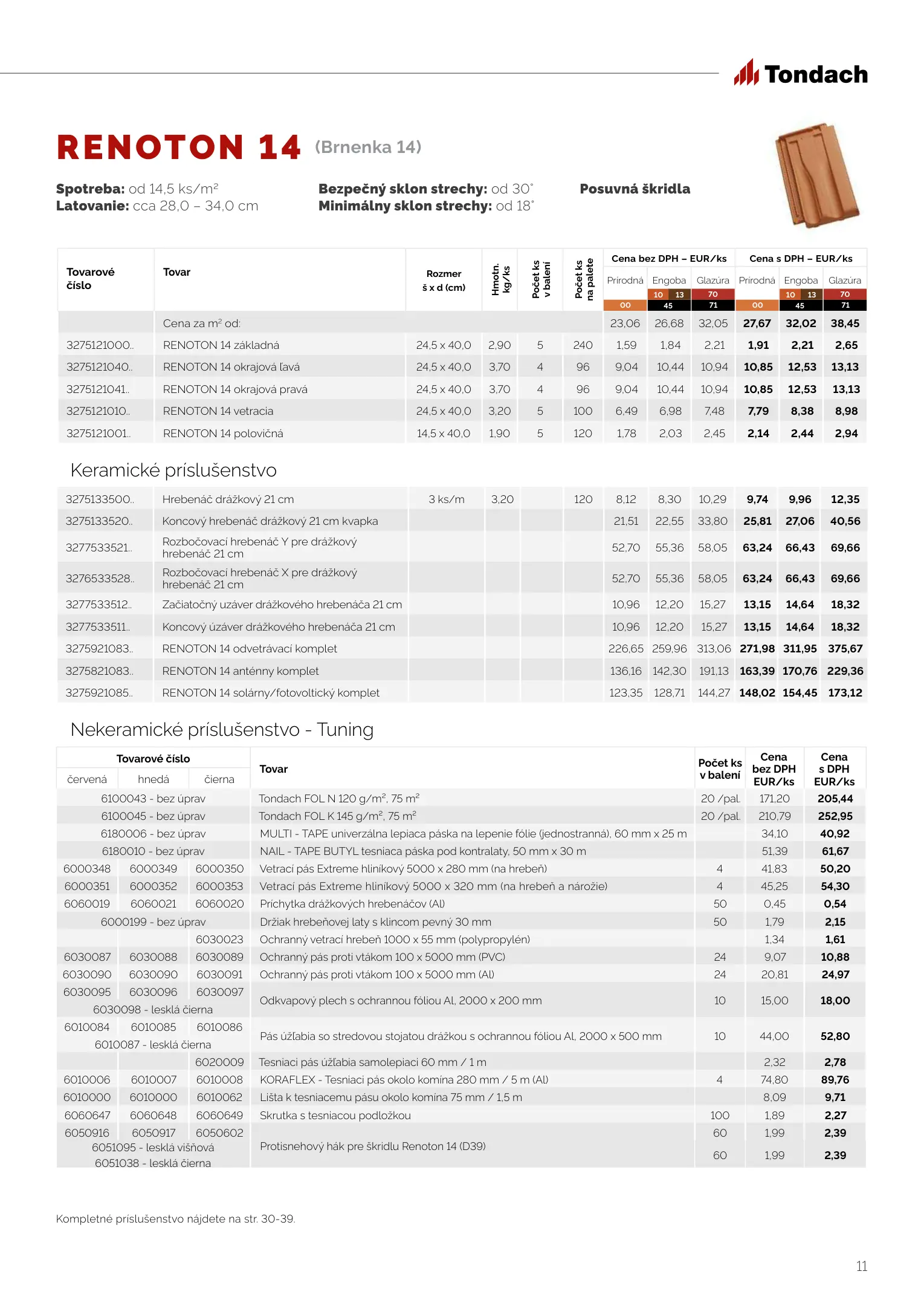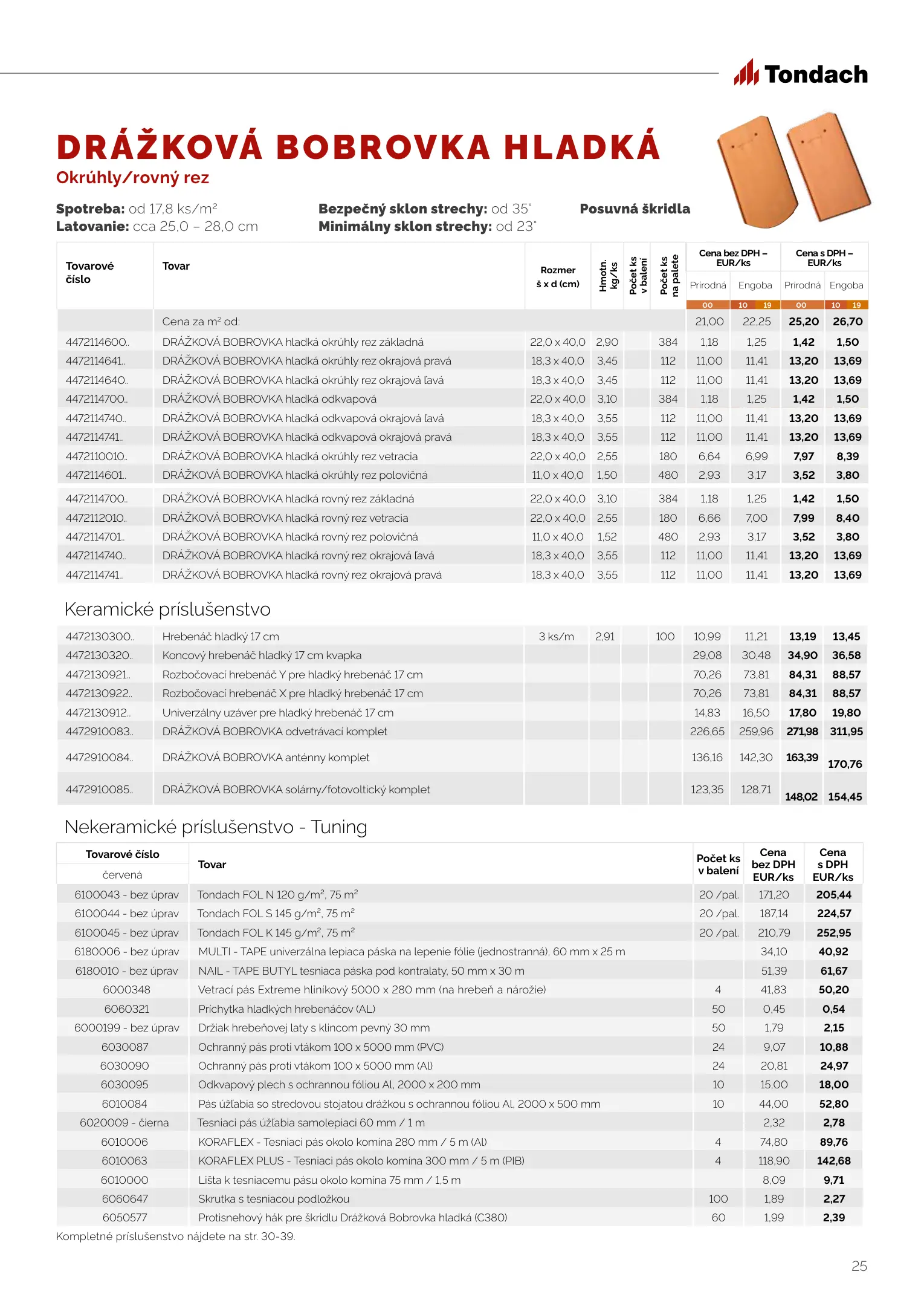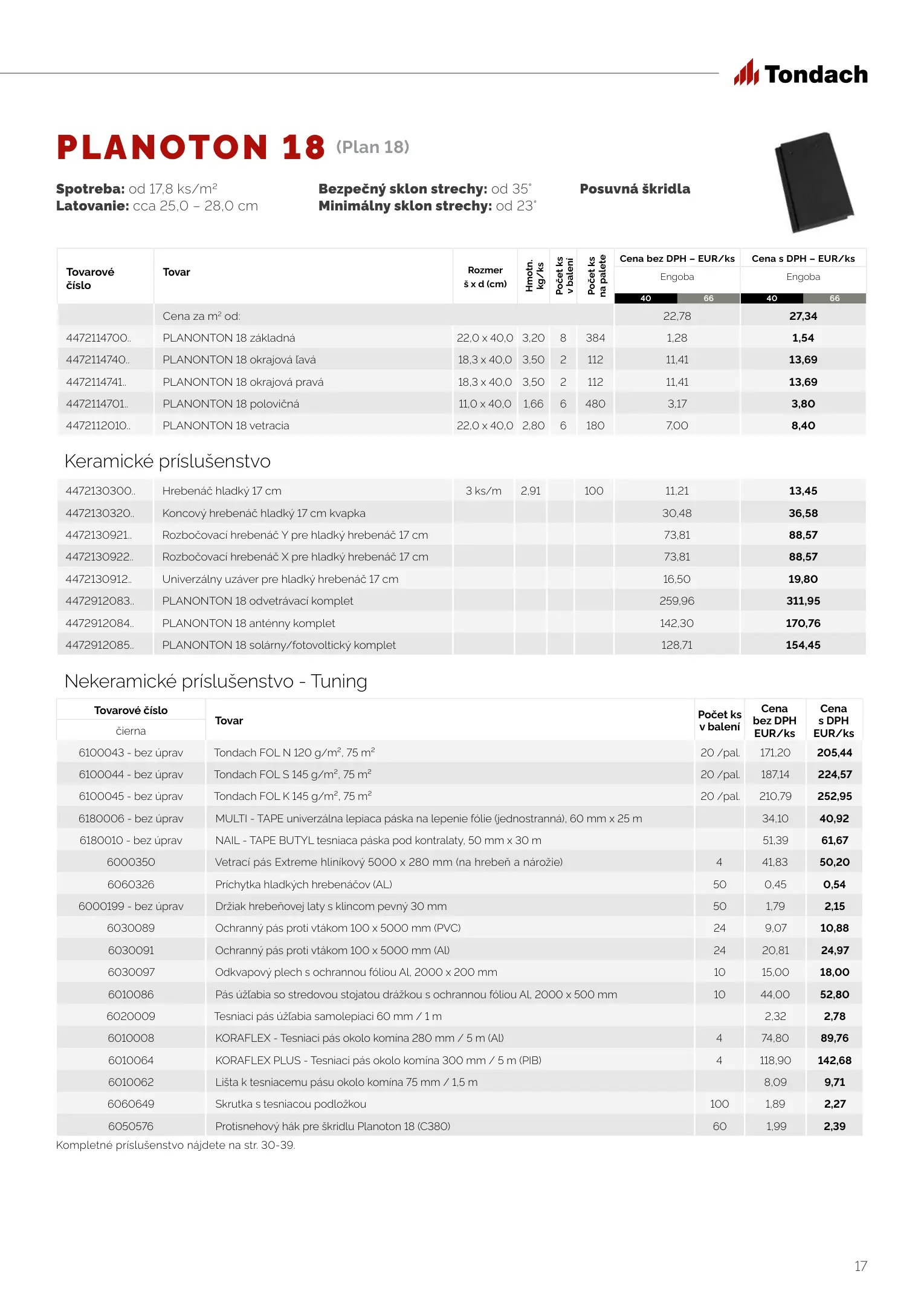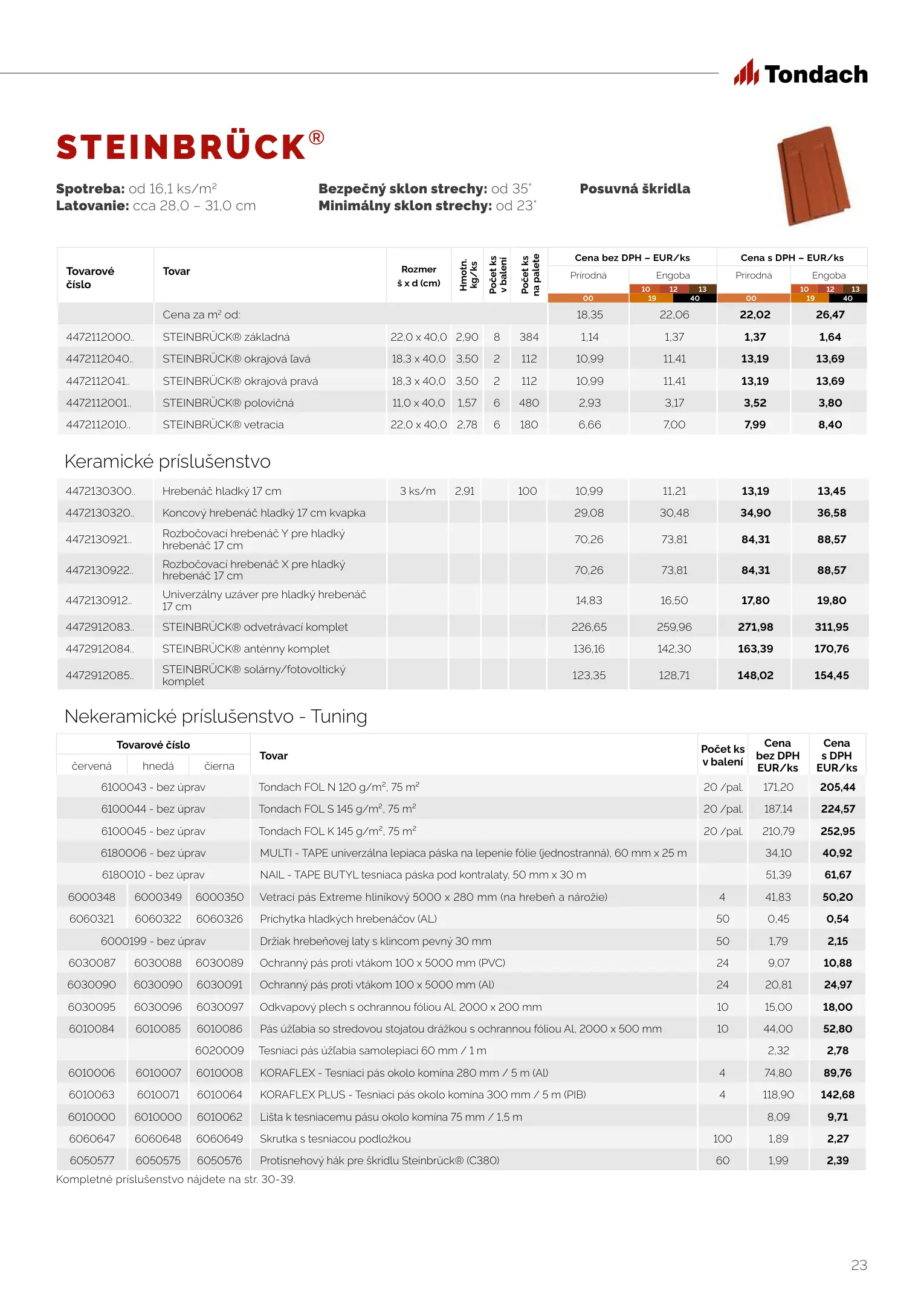Tondach cenník produktov 2023