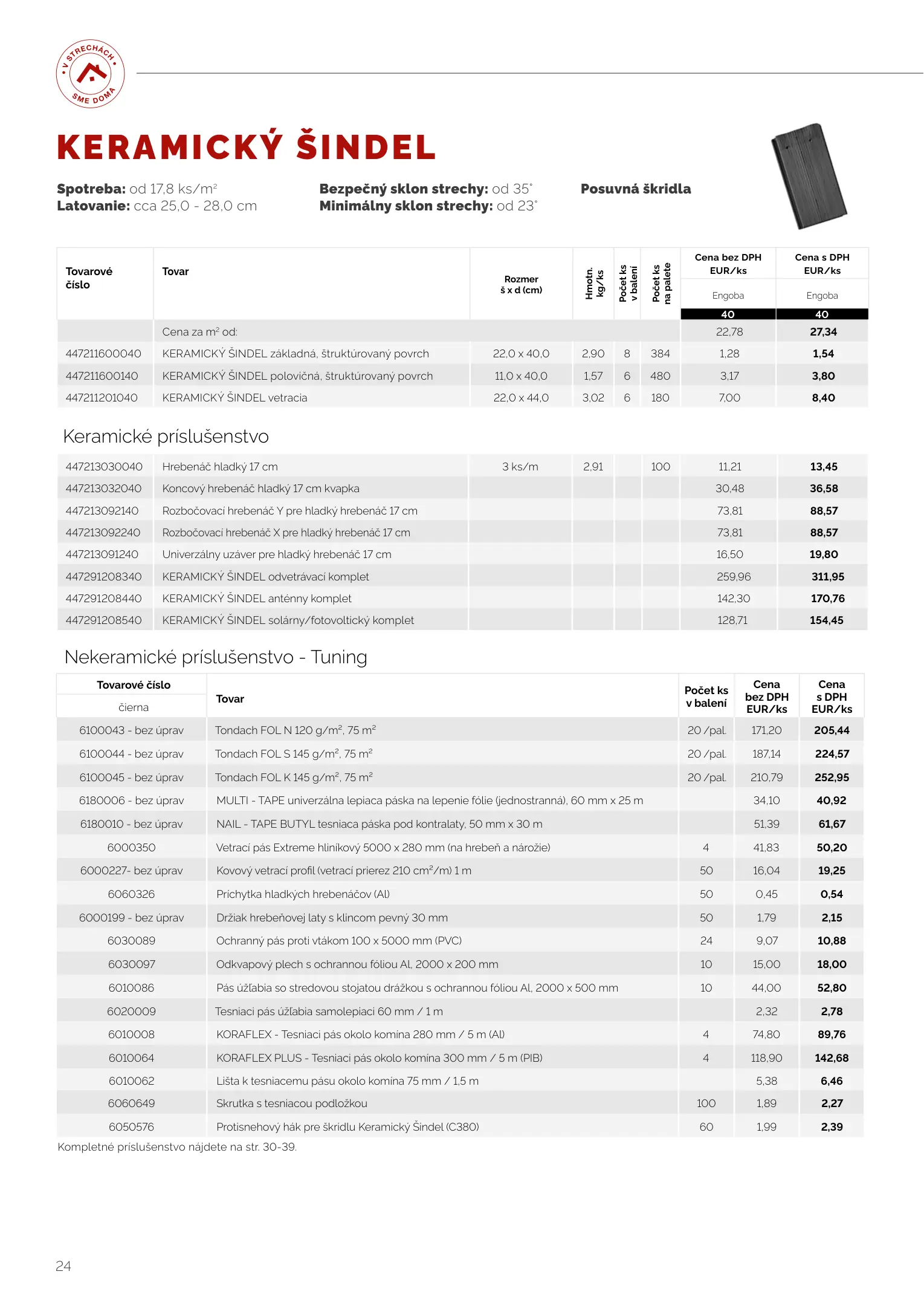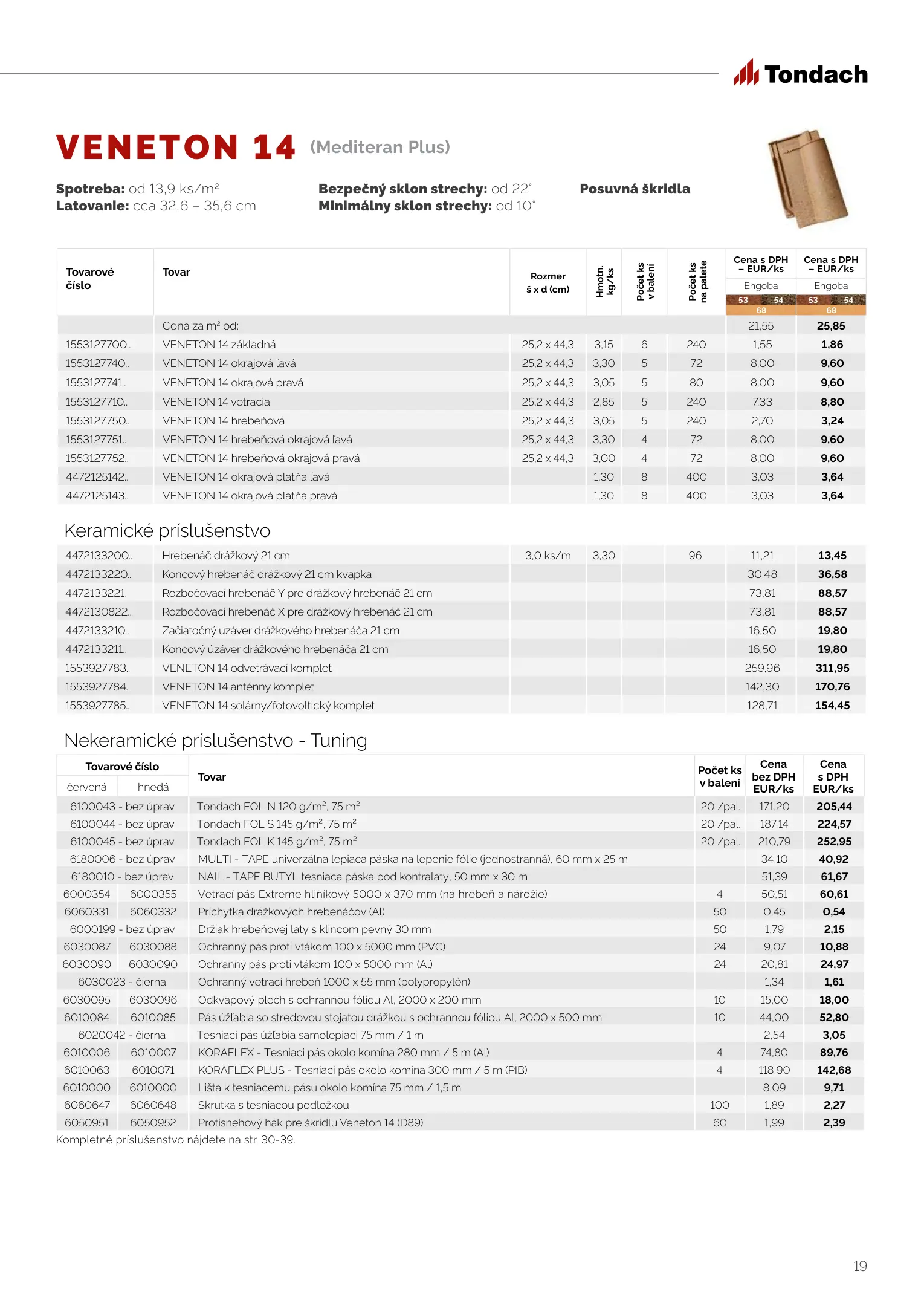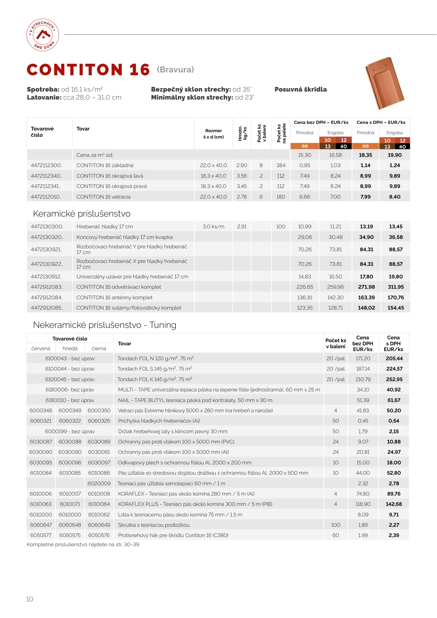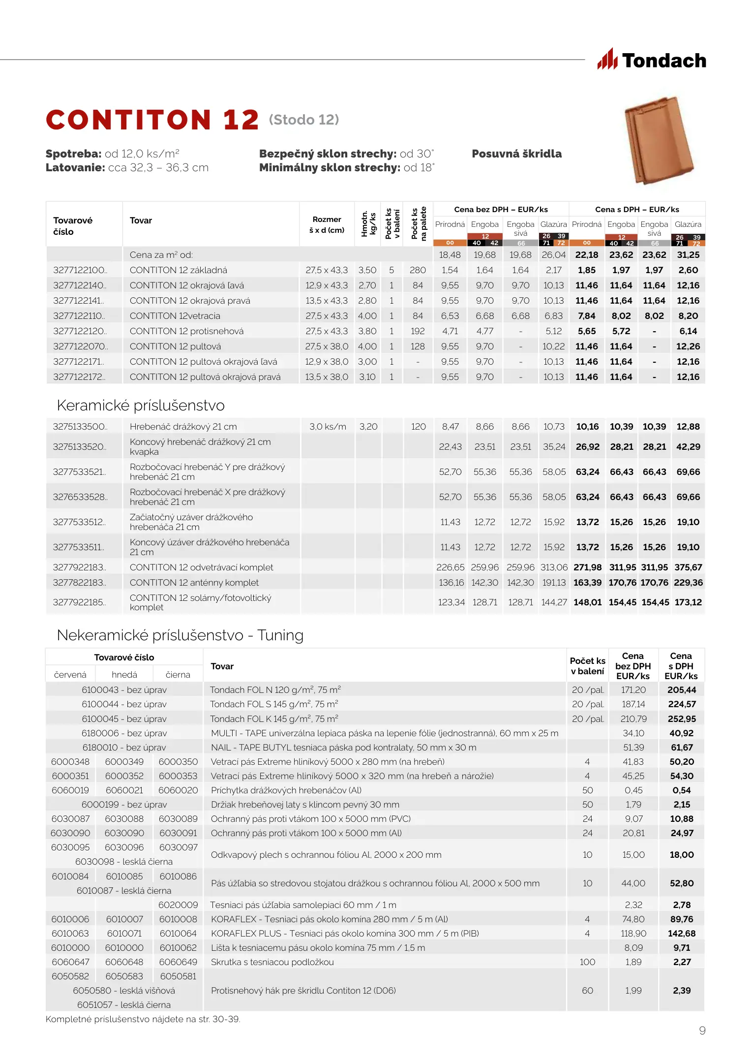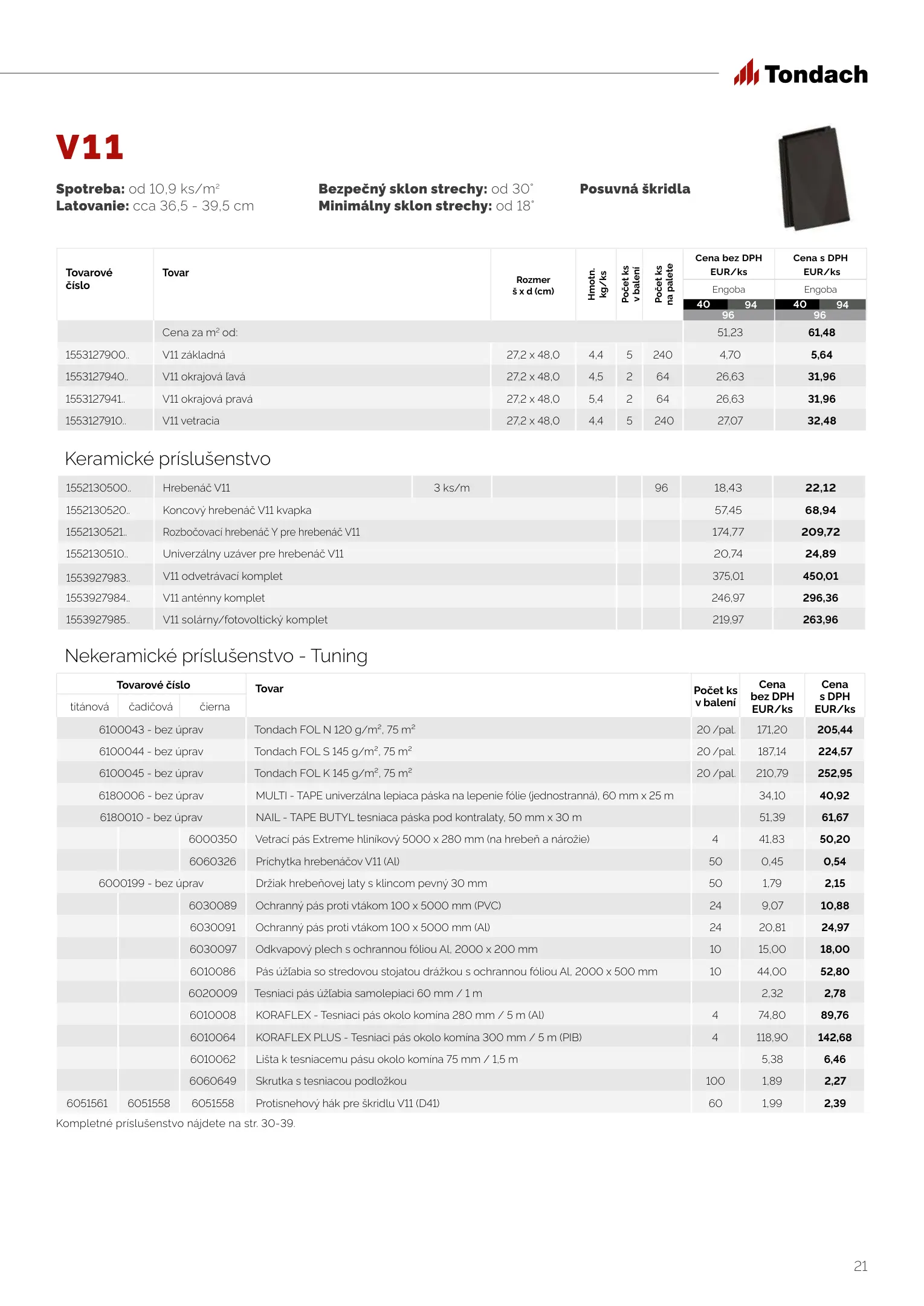 Tondach cenník produktov 2023