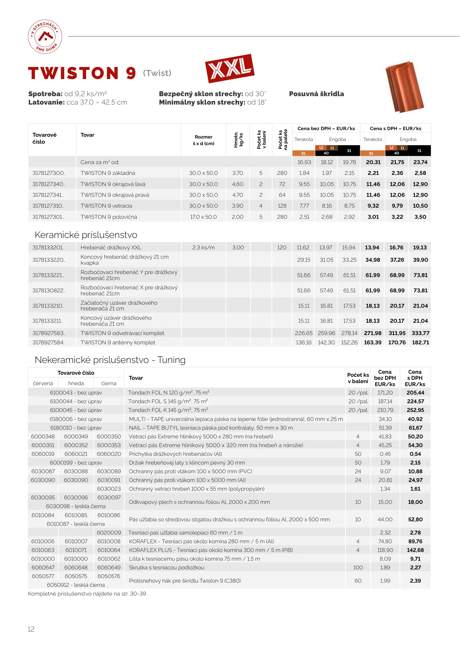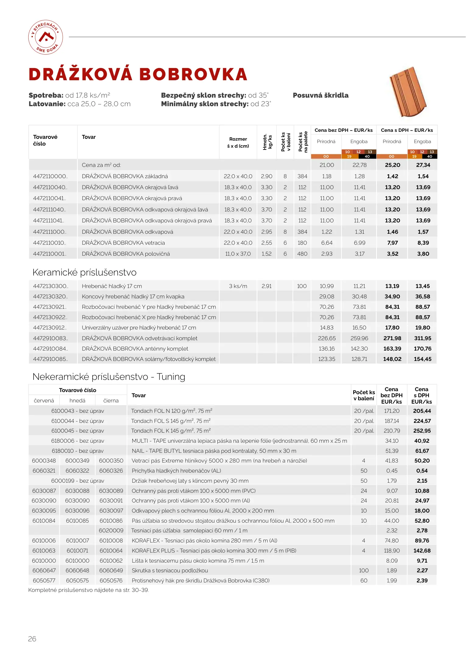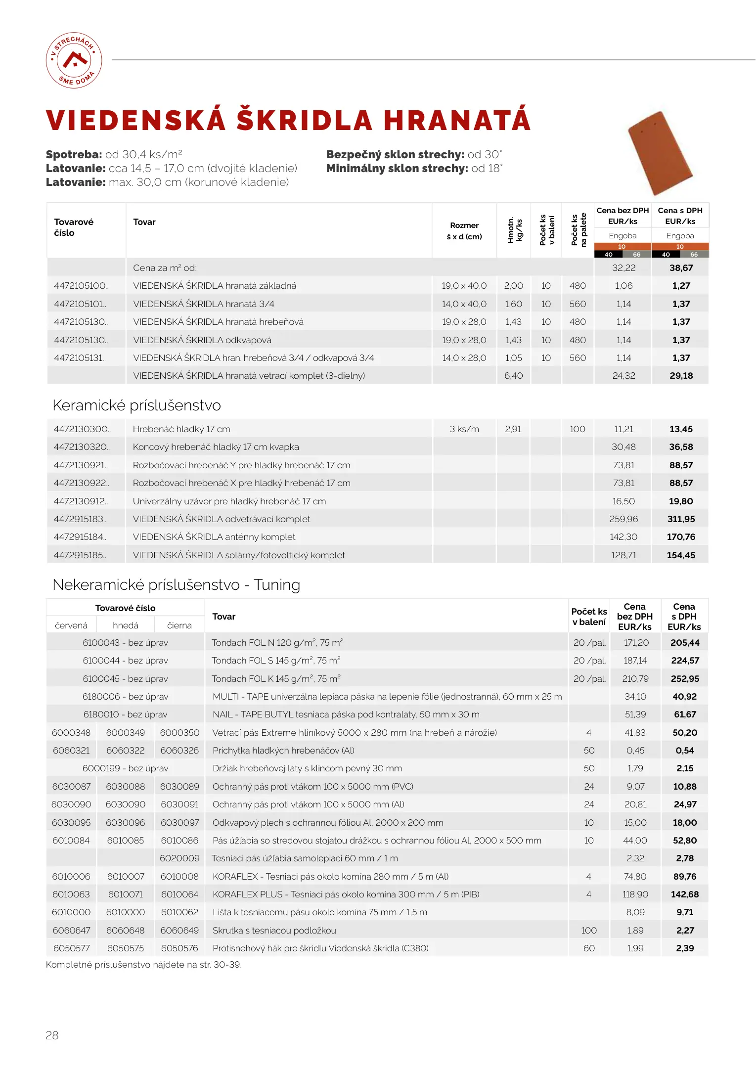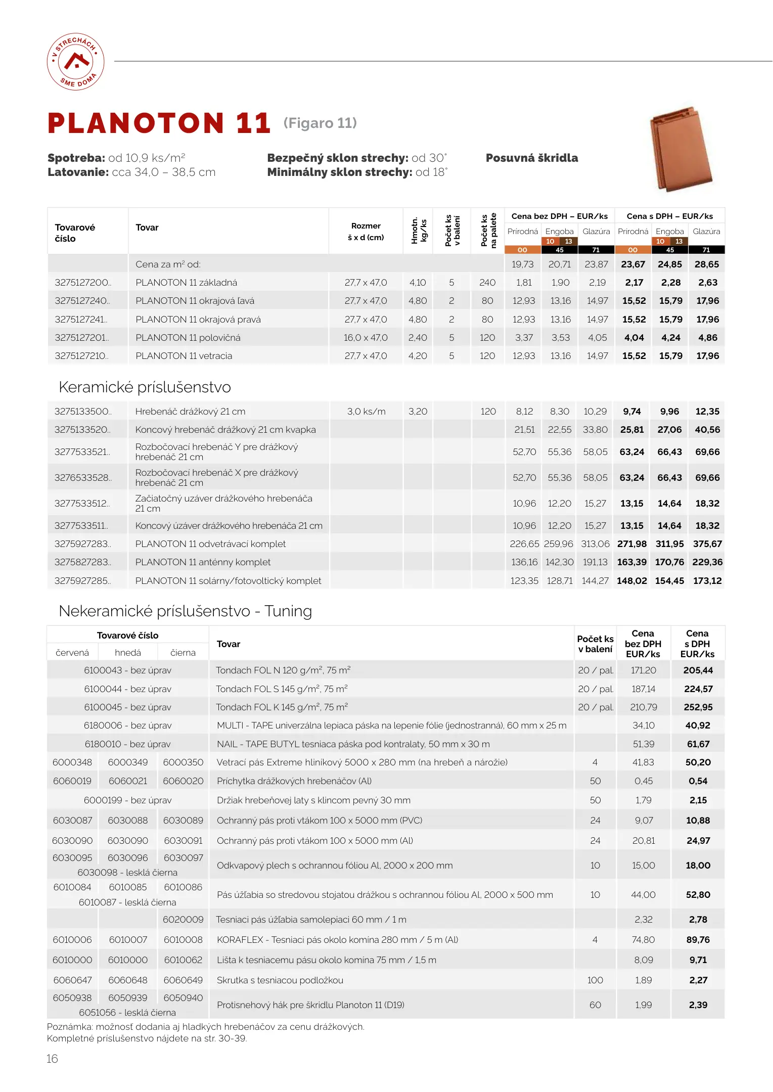 Tondach cenník produktov 2023